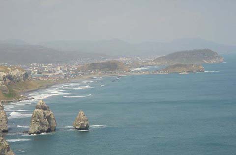 夏の浜辺に親子鯨! 室蘭便り 2008.07.15 夏を迎えたイタンキ浜 霧の中の洞爺湖サミットも終わり、胆振地方沿岸はしばらくはガスの中。 たまの晴れ間にイタンキを散歩すると、親子の鯨が悠然と沖へ向かって泳ぎだすような風景に、昔のアイヌの伝説を思い起こさせます。 撮影 12期 羽立二三夫