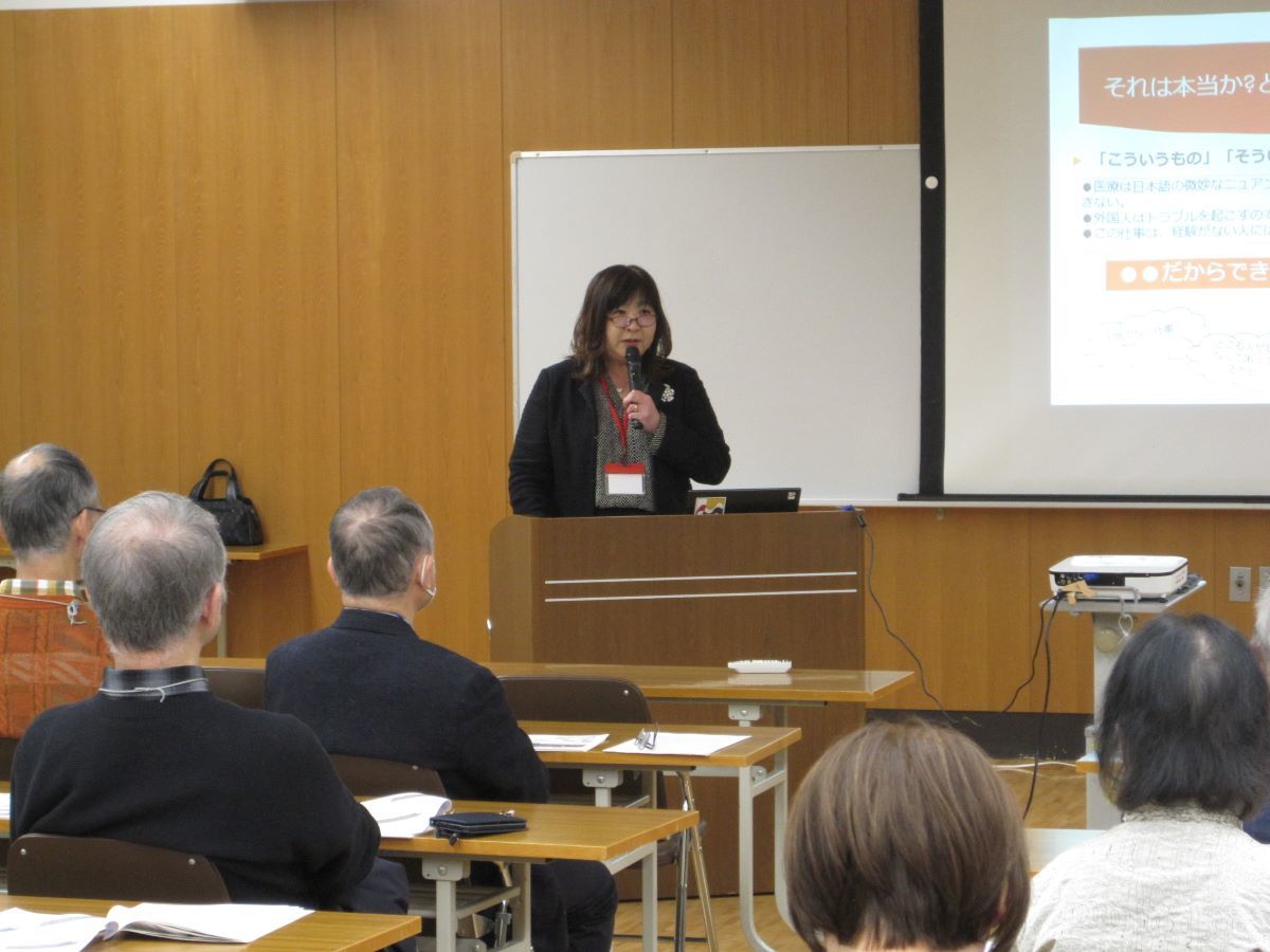 深澤さんの講演は、医療の現状説明から始まりました。本年1月1日に発生した能登半島地震への医療チーム派遣にも触れられました。少子高齢化、地域医療、社会保証制度、医療介護分野での人材確保などをテーマに沿ってお話しされました。