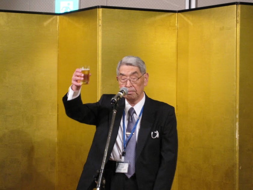 懇親会の司会進行は17期大津信二副会長。来賓挨拶に続き、塚田尚史顧問の乾杯で懇親会の開始です。