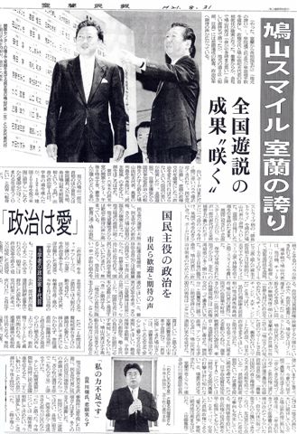 新聞報道でも今後の民主党の政権に期待する声が圧倒的で鳩山代議士の活躍が大いに期待されるところです。