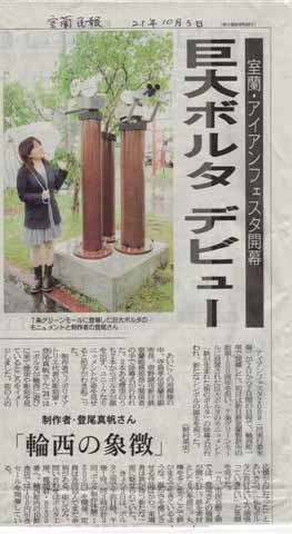 輪西の7条通りに大型のボルタが製作されモニュメントとして設置されました。