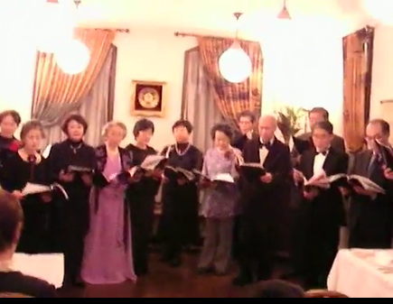 場所はクリスマスでにぎ合う原宿竹下通りから一本路地に入った、ブラームスの小道にあるフランス料理洋館「ルセーヌ」で開催されました。ここは結婚披露宴などが開かれる瀟洒な洋館ですがドレスアップした出演者みなさまにぴったりのスチュエーションに観客もうっとりでした。