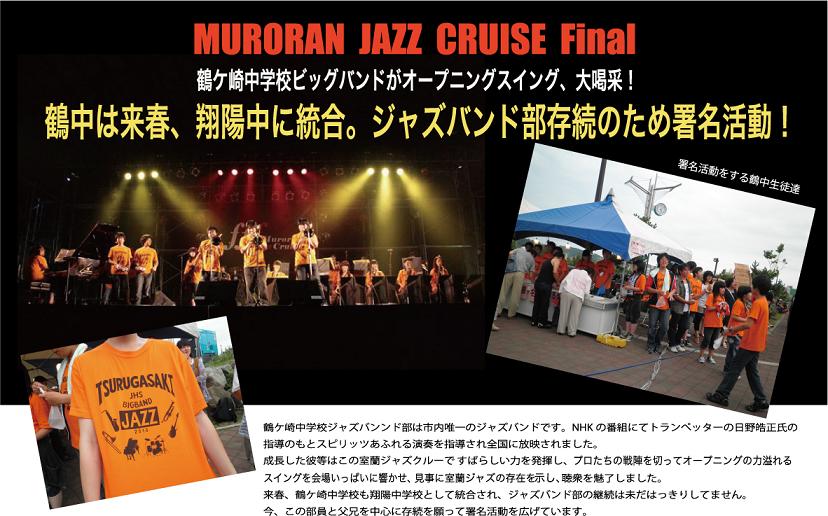 室蘭の夏のイベント「MURORAN JAZZ CRUISE」は10回目を迎え、これを区切りとして今年でファイナルとなりましたが、このジャズフェスティバルのオープニングを飾った鶴中ジャズバンド部の存続支援の声が上がってます。
