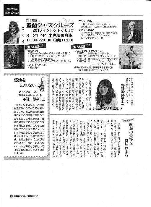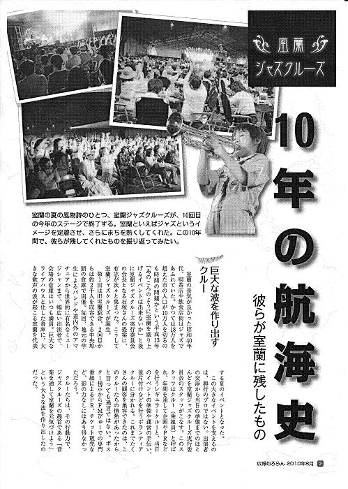 この「室蘭ジャズクルーズ」は室蘭広報たよりで紹介されてますので抜粋掲載しました。
