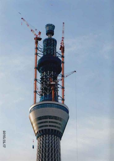 スカイツリーは511mに達しました。これは鉄骨部の最上部だそうです。後はこの上にアンテナがジャッキアップされてきます。既に途中まで来ているとのことです。