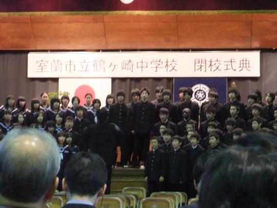 閉校式」での全校生徒による「旅立ちの日に」など2曲の合唱・・・・なかなかうまかったです。
