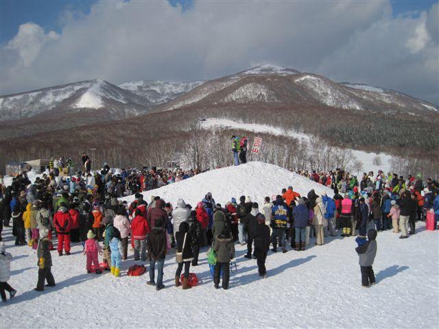 スキー大会やじゃんけん大会のほか多くの子供を集めて宝探しが行われ、子供たちの歓声が響き渡りました。