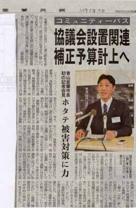 先日の地方選挙により新市長にこれまで2期、市会議員を務めた青山 剛氏が33歳という若さで当選し、5月1日から市行政を担うこととなりました。