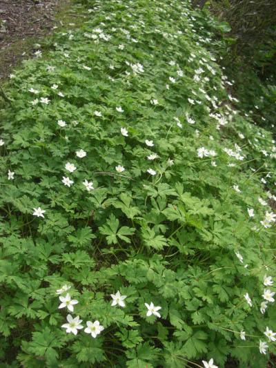 今の時季、遊歩道に咲くニリンソウ。遊歩道のいたるところに群生しています。