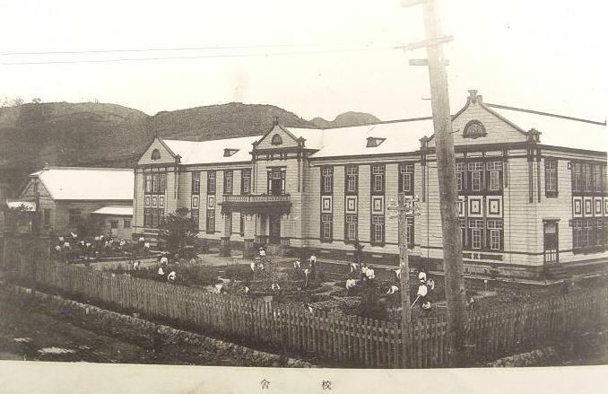 卒業アルバム表紙、室中校舎(大正10年4月5年生による植栽風景)