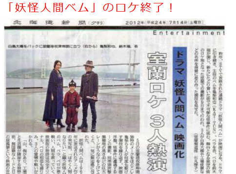 先日来送っています「妖怪人間ベム」のロケも終わり一時、室蘭をロケの集中で賑わせましたが、やっと落ち着いたかなと思います。