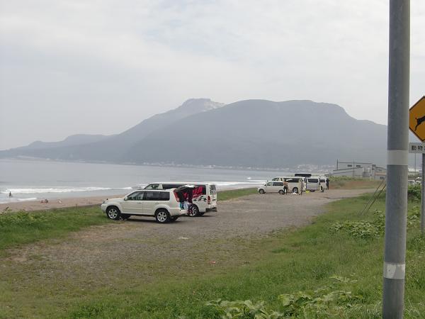 16時00分、(50.5キロ地点)大安在海岸にて休憩。今日のゴール「道の駅もんじゅ」まではもう少しだ。大安在海岸から江差まで続く砂浜海岸線は、千葉県の九十九里浜を思いだす。