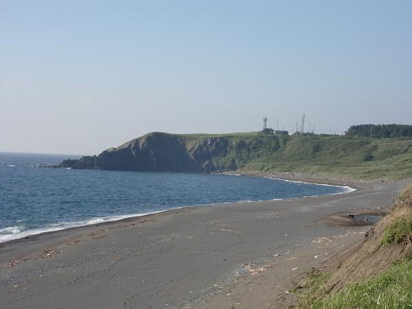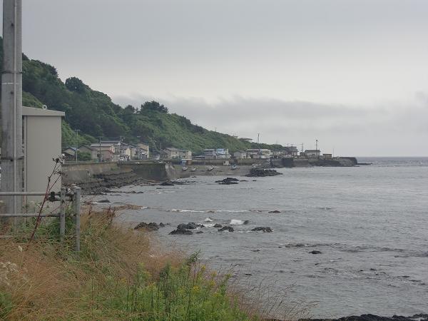 12時43分(26.5キロ地点)尾札部に到着。尾札部は「とろろこんぶ」生産日本一だそうで、海岸線には昆布を乾燥する小屋が連なっている。ここでクロワッサン1個食べる。出発してすぐに尾札部中学校が見える、以前叔父がこの中学校で社会科の先生をしていたので懐かしい。尾札部を過ぎると漁師の家はまばらになり、やっとボイラーの熱風に悩まされることがなくなった。