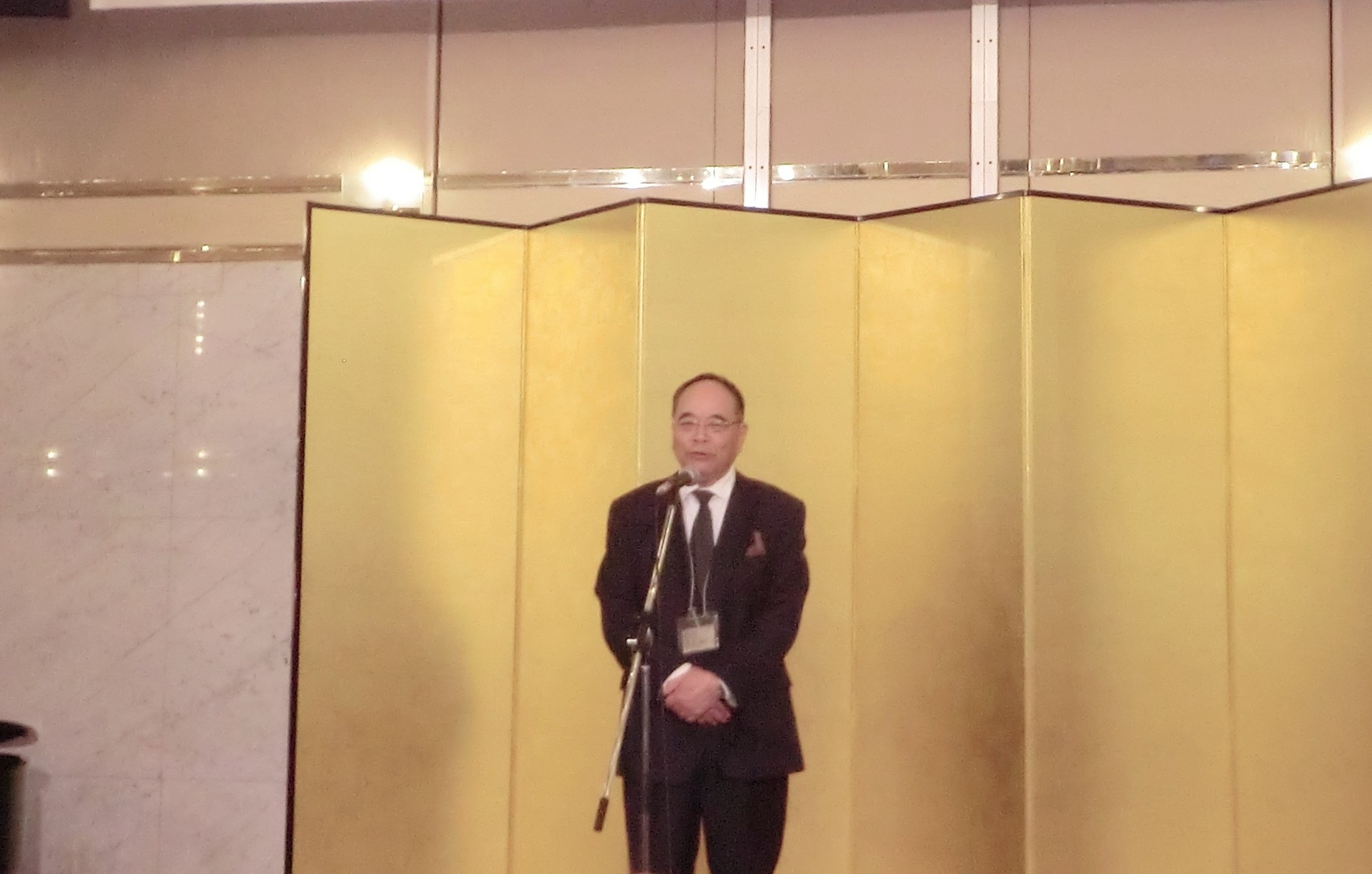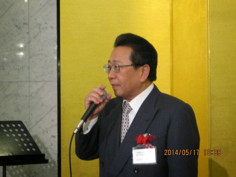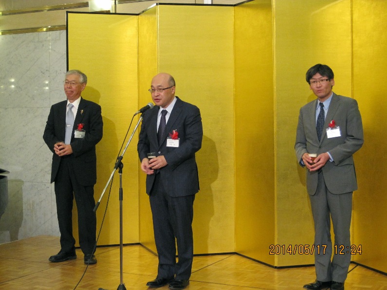 初めに塚田尚史会長があいさつ。東京白鳥会が10周年にあたり、、多くの来賓を迎えて開催されたことを紹介。また2年に1度の総会・懇親会、総会の無い年は2度の講演会を行ってきた東京白鳥会の活動を紹介、益々の発展をと結んだ。