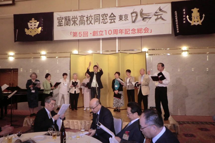 同窓生のコーラスグループ「すずらんの会」の校歌合唱が参加者を出迎える中、第5回東京白鳥会総会が12時に開幕。
