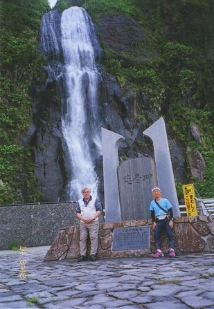 9時39分、岩尾(93.5キロ地点)にて小休止。途中の「雄冬トンネル」は歩道が急に狭くなり、通行に気を使う。さらに「赤岩岬隧道」から5個続く。10時30分、日和泊トンネル(99.5キロ地点)出たところで休憩。途中の「黒岩トンネル」と「日和泊トンネル」の接続工事で、一部片側通行だが、係員の指示で安心して通過できた。(写真は雄冬岬にて菅原君と)