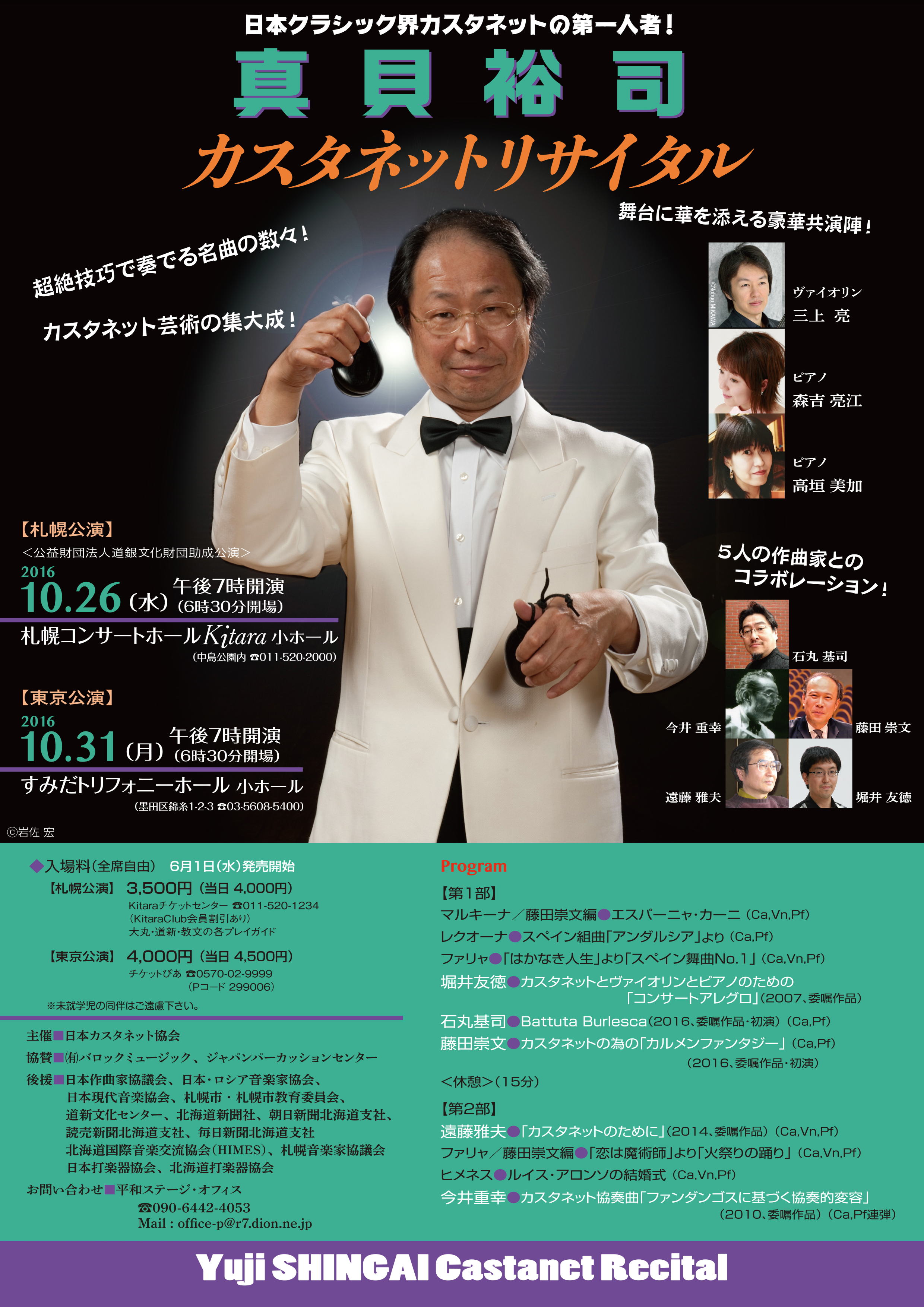 私にとりましては初の「真貝裕司カスタネットリサイタル」をチラシのとおり開催する運びとなりました。