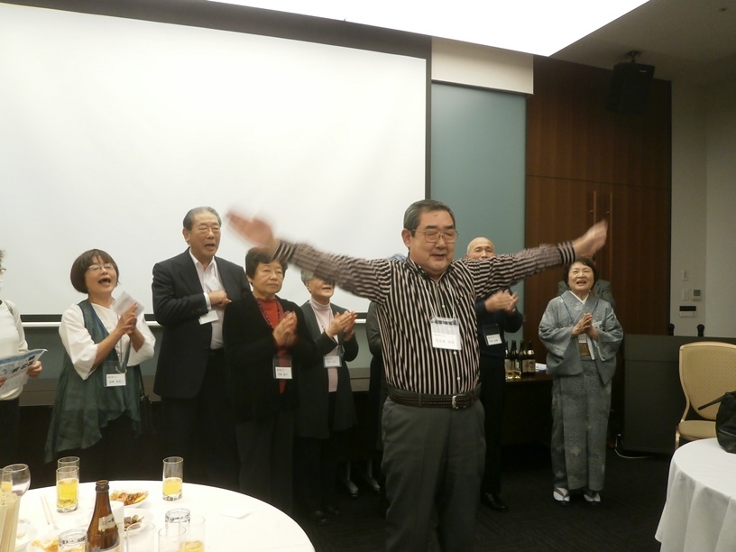 最後は19期の苫米地さんのエールで「優勝歌」で盛り上がりました。19期の嶋野副会長に中じめ、大津さんに元気いっぱい三三七拍子でしめていただきました。2018年は総会でお会いしましょう!