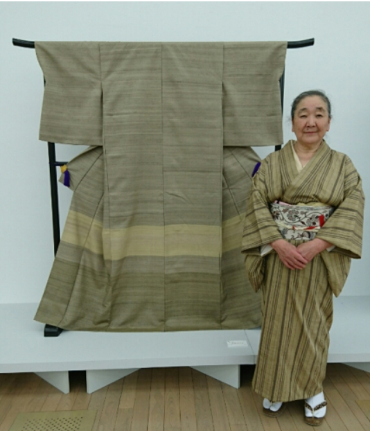 今回の作品「若草」は室蘭近郊や胆振の山野からの麒麟草、よもぎの若草など採取された染料を使って染織した糸を織り上げたものです。