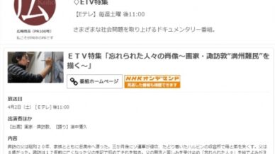 お知らせ 4月2日(土)NHKのEテレに室栄36期、諏訪敦さんが出演
